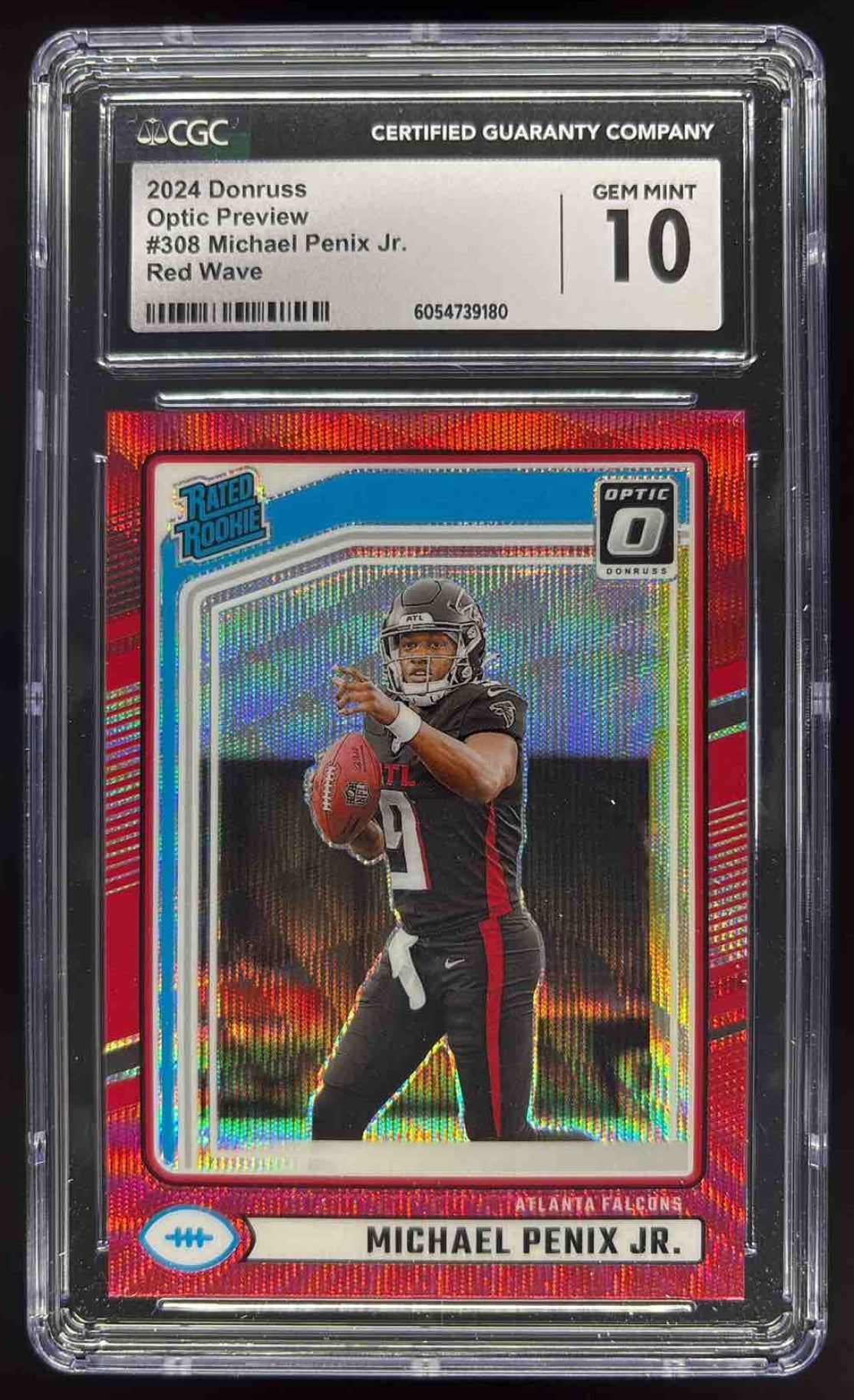 2024 Donruss Optic Rated Rookies Preview Red Wave Michael Penix Jr. RC CGC 10