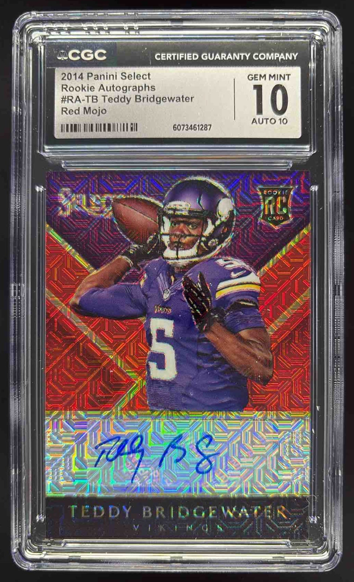 2014 Select Rookie Prizm Mojo Red #RA-TB Teddy Bridgewater RC Auto /10 CGC 10