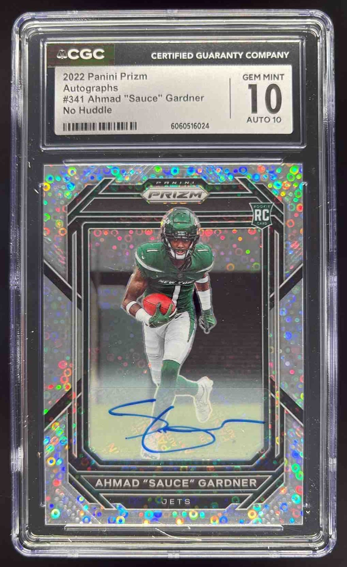 2022 Panini Prizm Rookie Prizm No Huddle #341 Ahmad Sauce Gardner RC Auto CGC 10