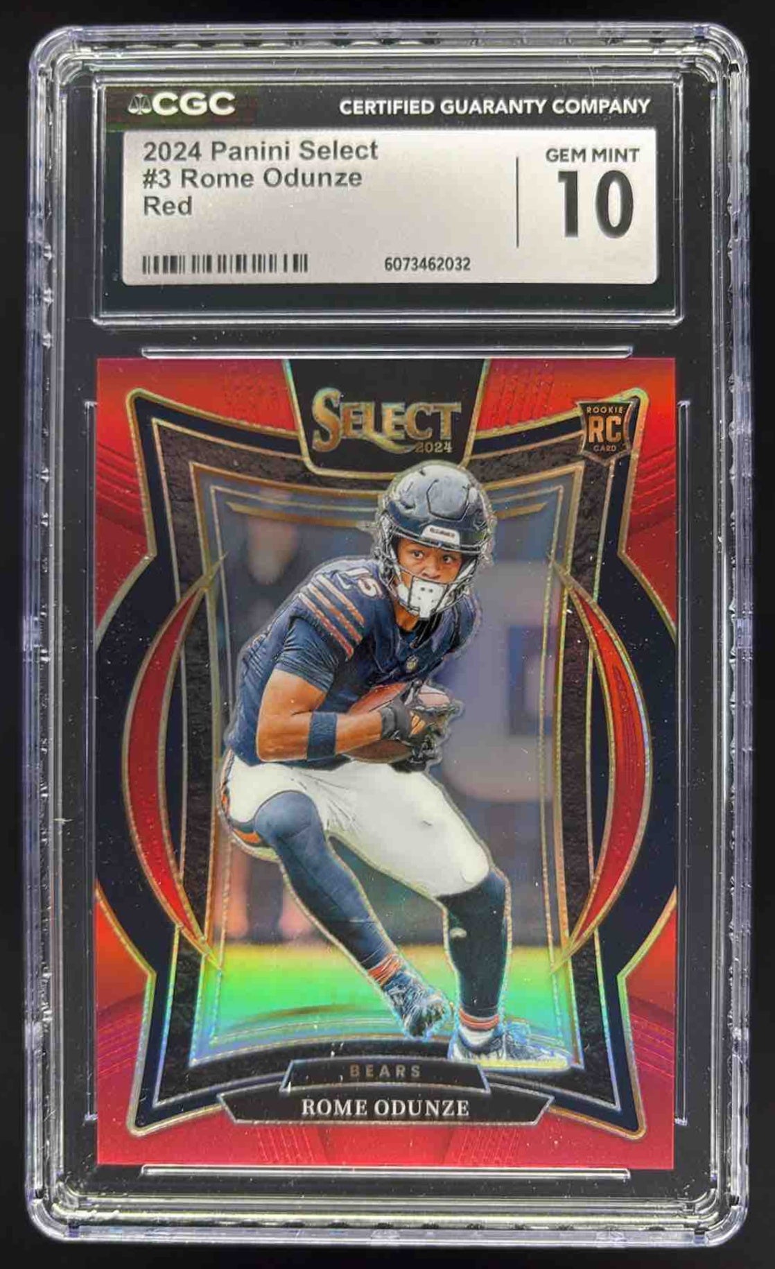 2024 Panini Select Concourse Red Prizm #3 Rome Odunze RC /99 CGC 10