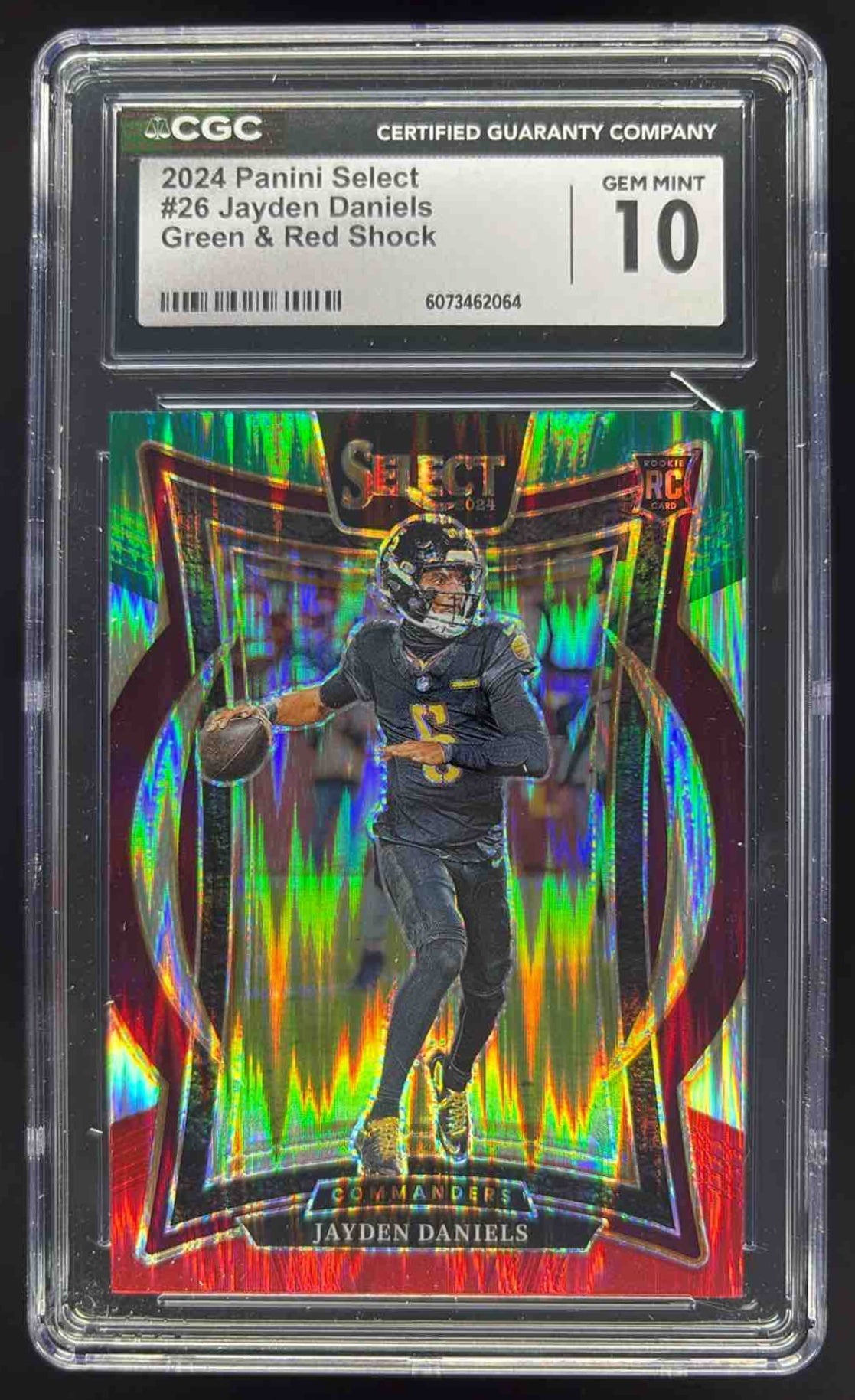 2024 Select Concourse Green and Red Prizm Shock #26 Jayden Daniels RC CGC 10