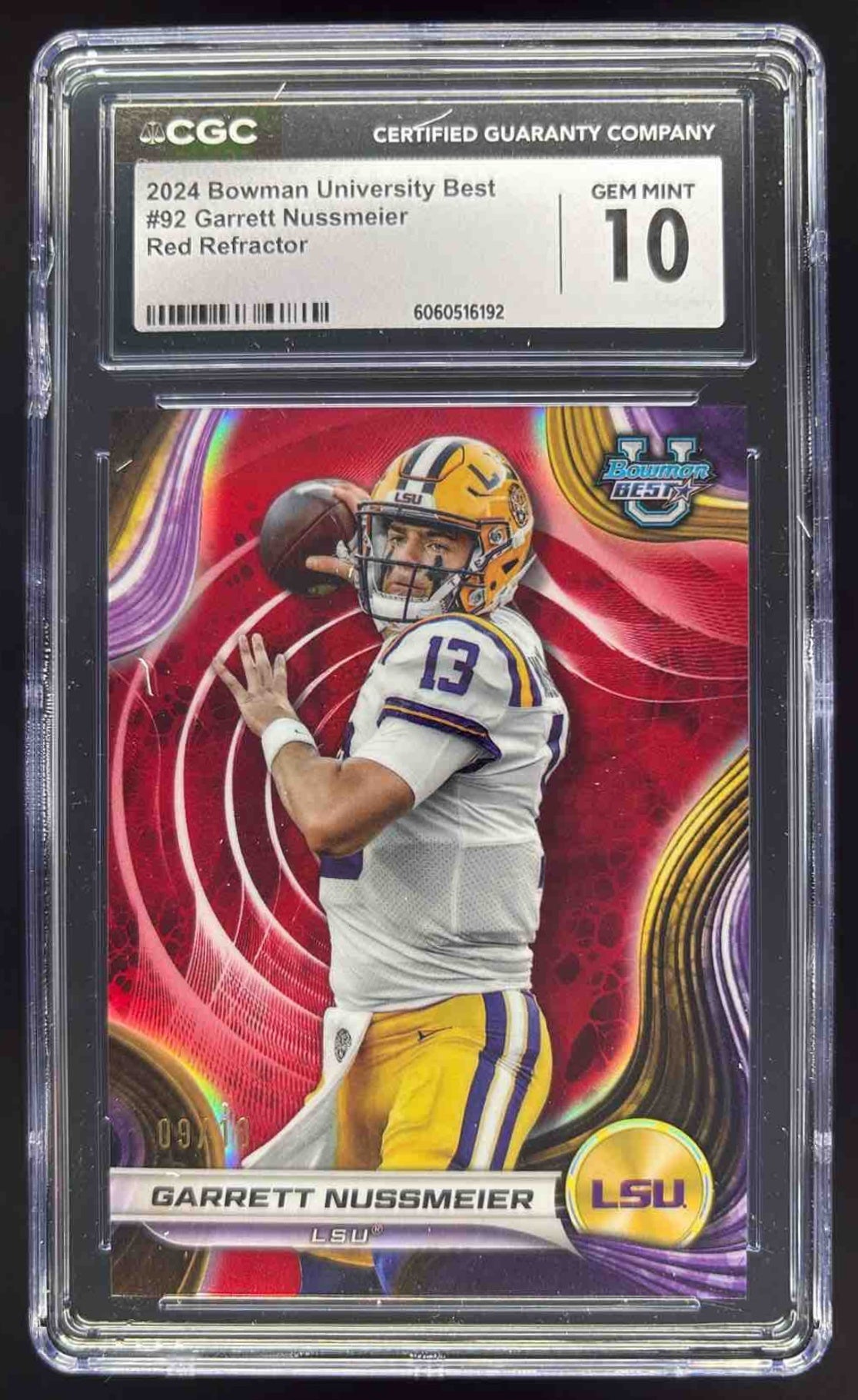 2024 Bowman Best University Red Refractor #92 Garrett Nussmeier /10 CGC 10