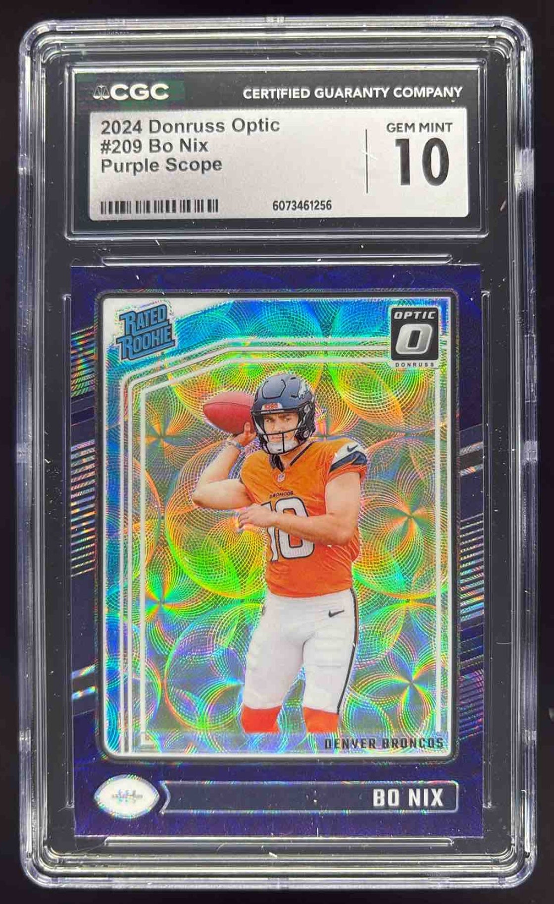 2024 Panini Donruss Optic Purple Scope #209 Bo Nix Rated Rookie CGC 10
