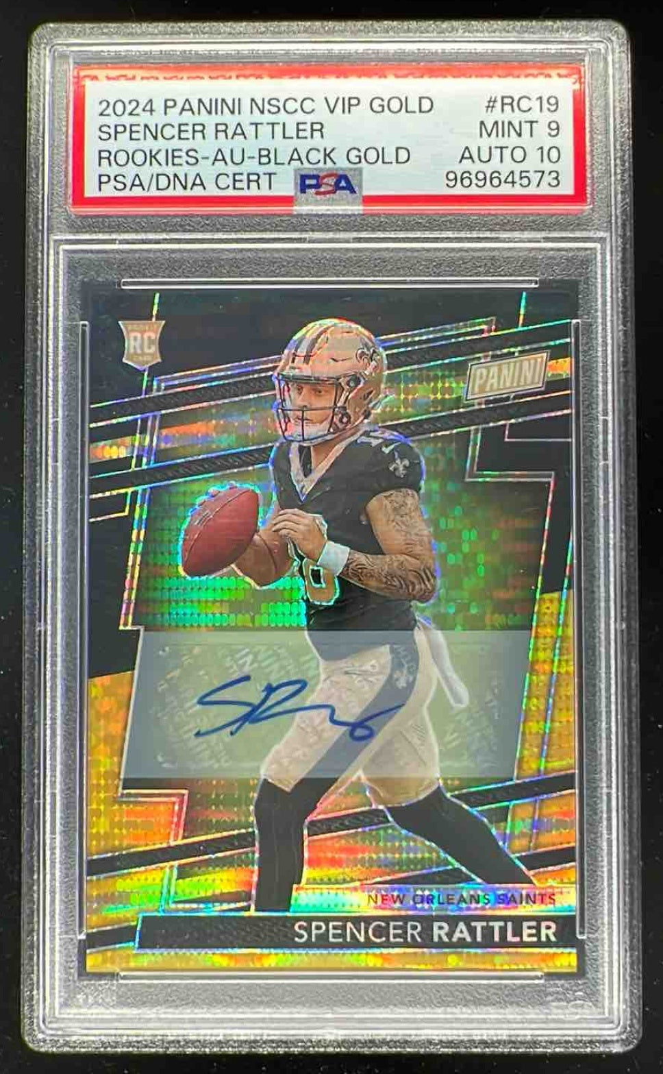 2024 National NSCC VIP Party Rookies Black Gold Spencer Rattler RC Auto /5 PSA 9