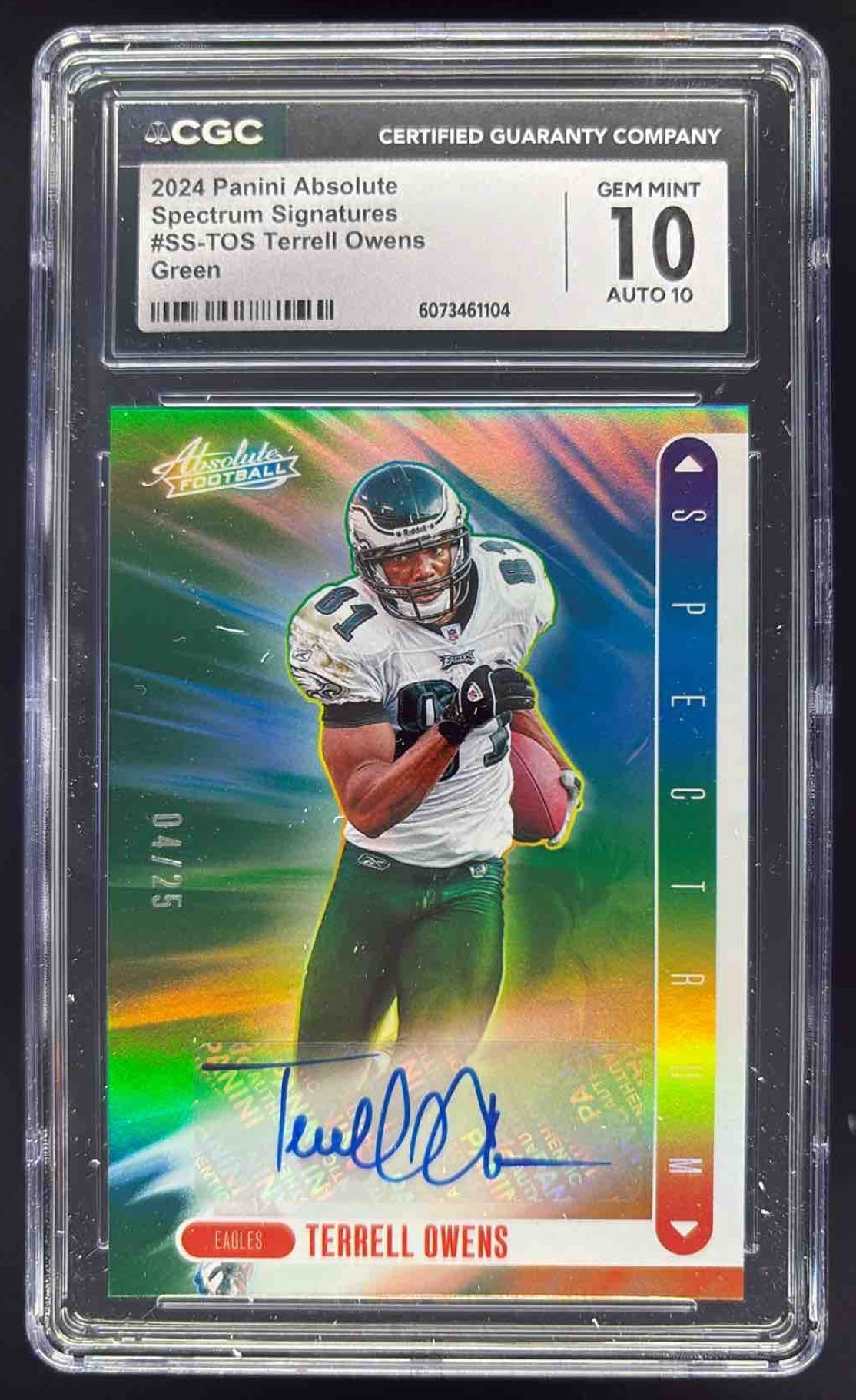 2024 Absolute Spectrum Signatures Green #SS-TOS Terrell Owens Auto /25 CGC 10