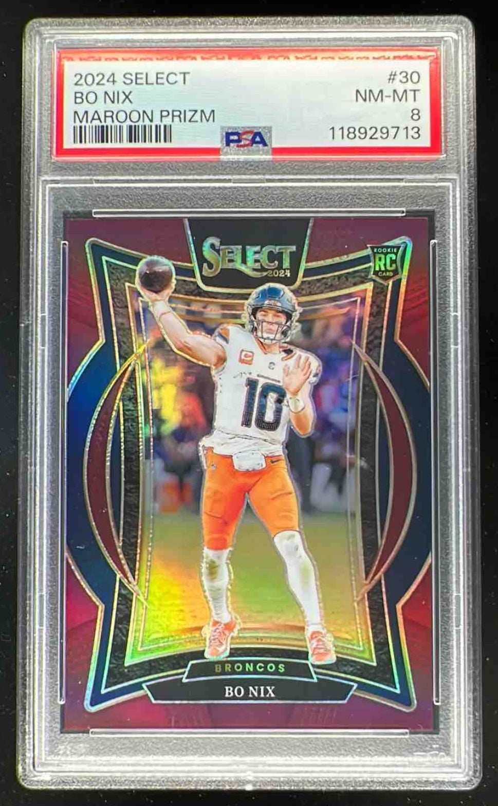 2024 Panini Select Concourse Maroon Prizm #30 Bo Nix RC /149 PSA 8