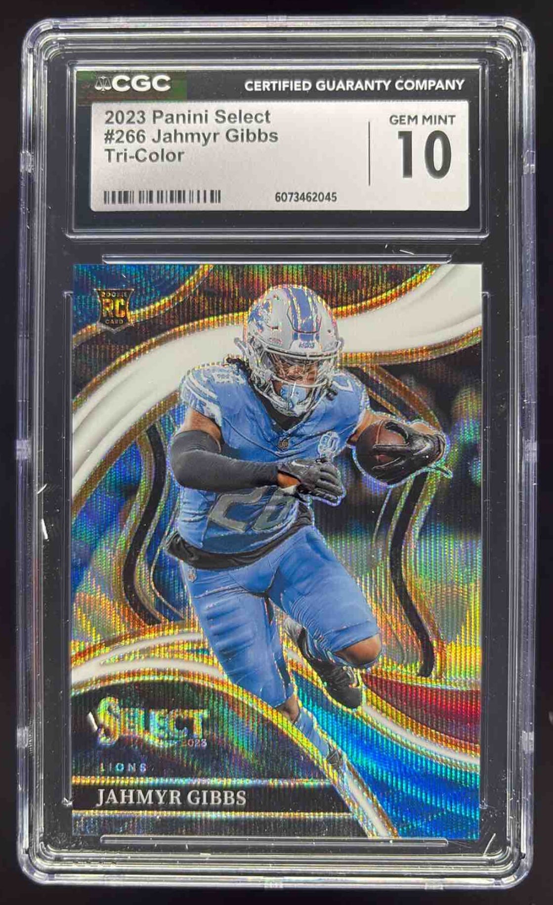 2023 Panini Select Tri Color Prizms #266 Jahmyr Gibbs Club RC /149 CGC 10