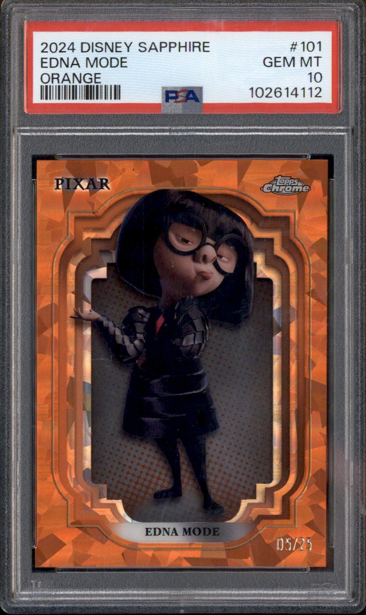 2024 Topps Chrome Disney Sapphire Orange Refractor #101 Edna Mode /25 PSA 10