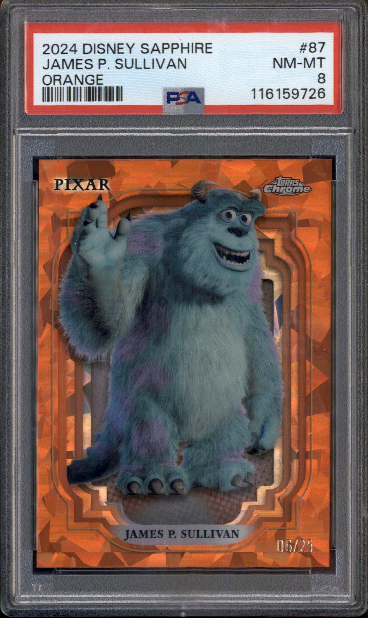 2024 Topps Chrome Disney Sapphire Orange Refractor James P. Sullivan /25 PSA 8