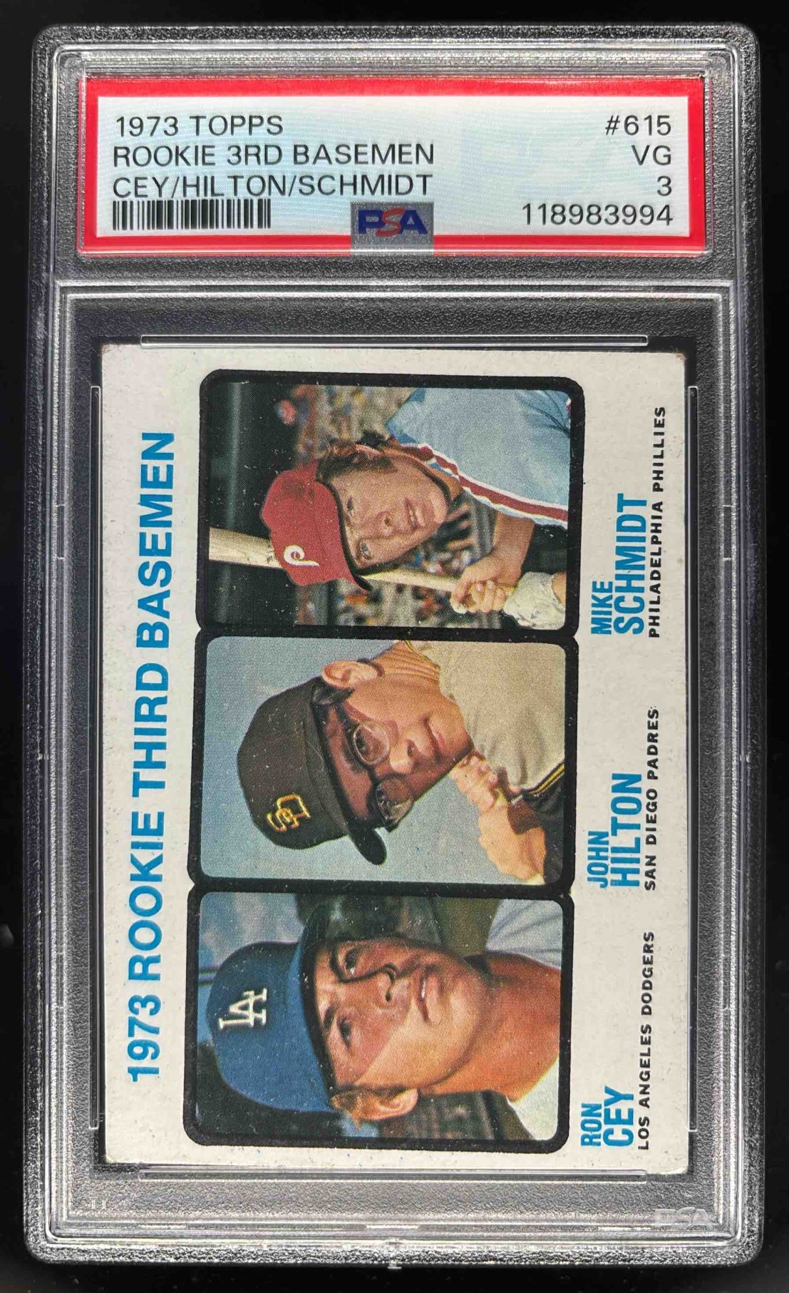 1973 Topps #615 Rookie Third Basemen Ron Cey John Hilton Mike Schmidt RC PSA 3