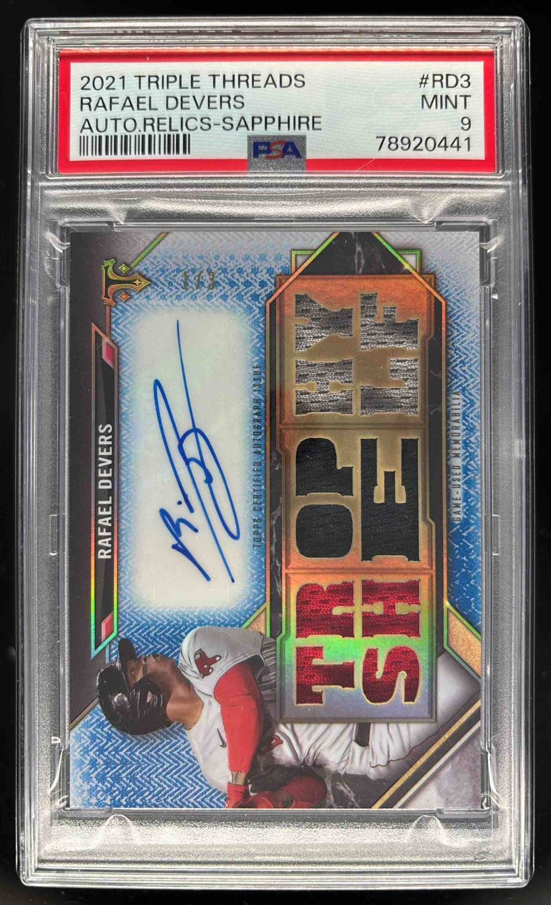 2021 Topps Triple Threads Relics Sapphire #TTAR-RD3 Rafael Devers Auto /3 PSA 9