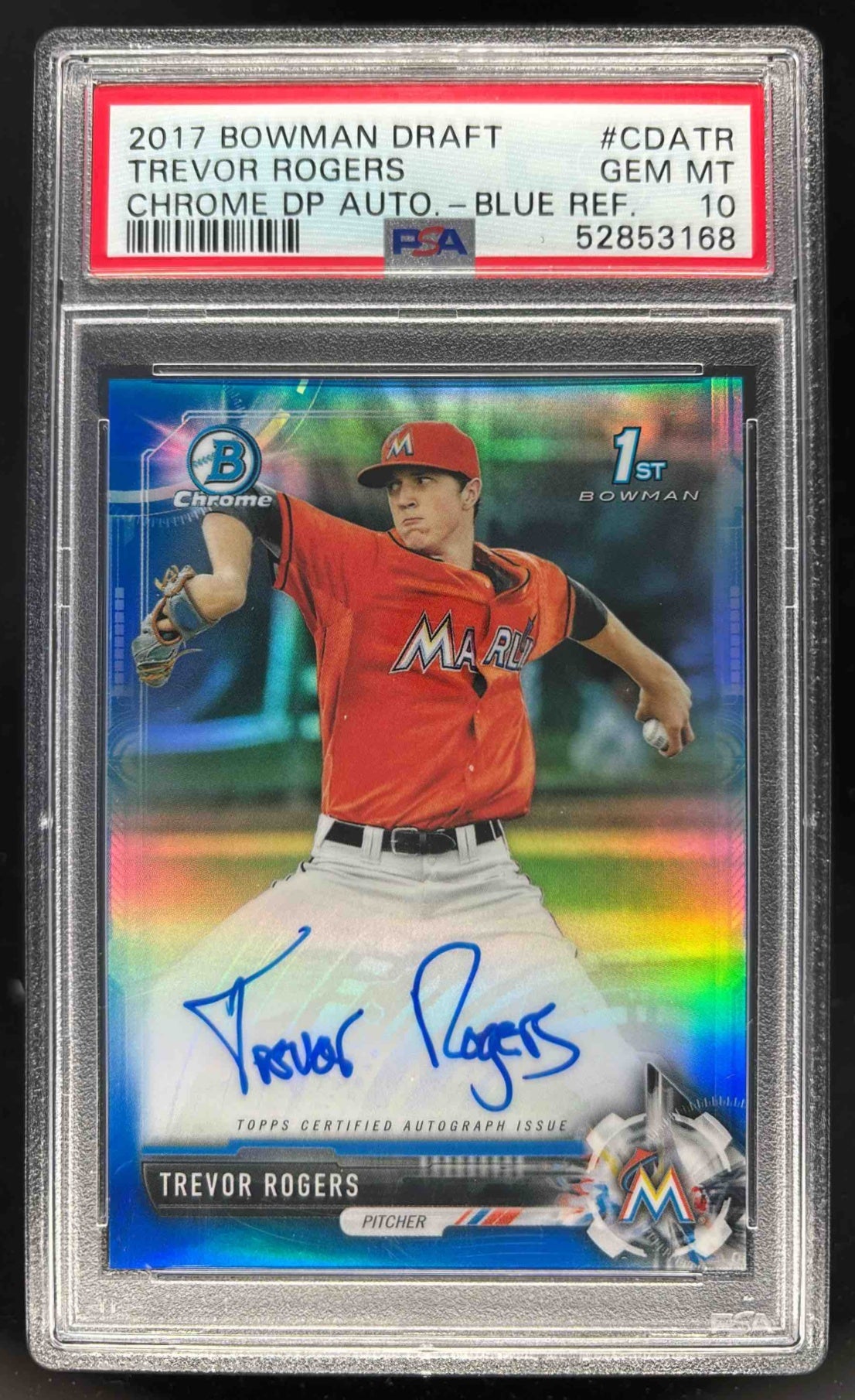 2017 Bowman Draft Chrome Pick Blue Refractor #TR Trevor Rogers Auto /150 PSA 10