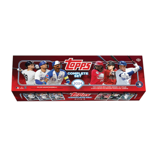 Arriving on store shelves July 2024, the 2024 Topps Baseball Complete Set contains the biggest names in the MLB. These sets have all 700 cards from the 2024 Topps Baseball Series 1 and Series 2. This is a great way for fans of baseball to get cards from their favorite players and all the most collectible rookies.