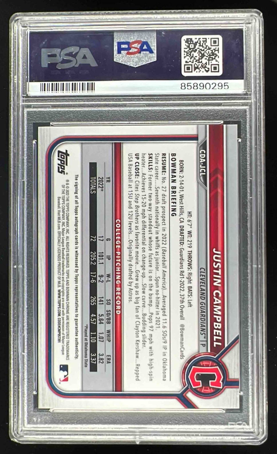 2022 Bowman Chrome Black & White RayWave Justin Campbell RC Auto PSA 10