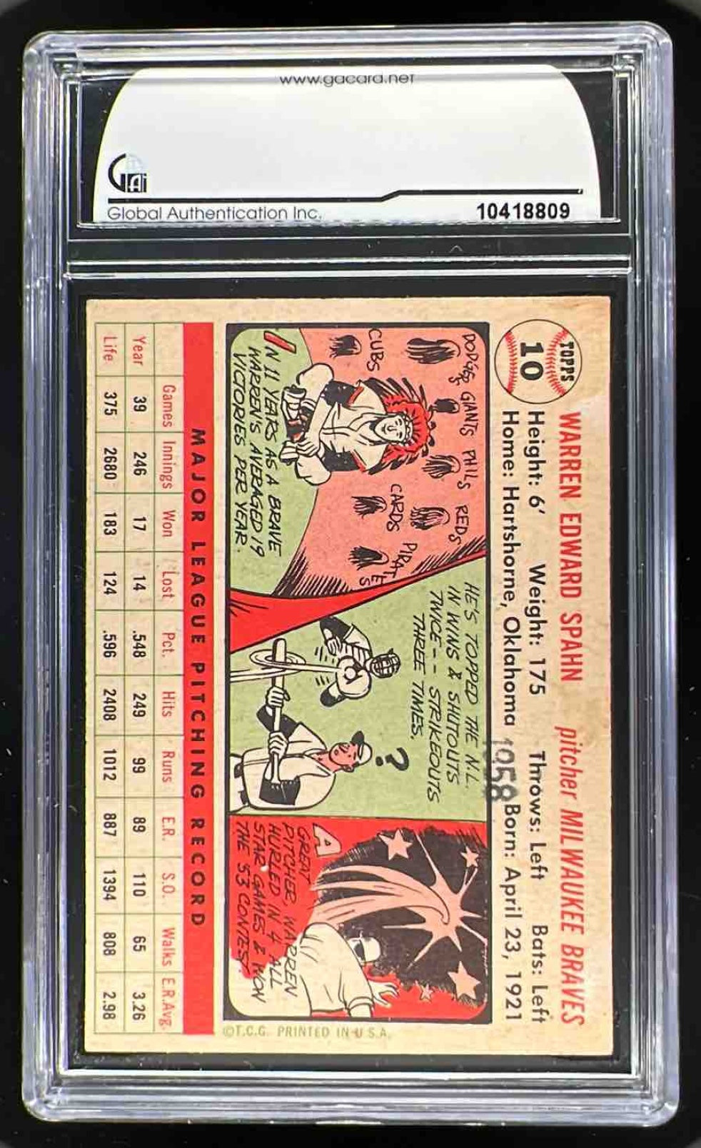 1956 Topps #10a Warren Spahn GAI 8
