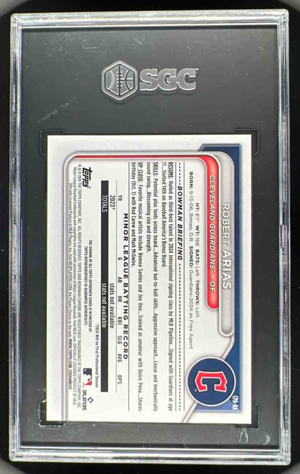 2024 Bowman Chrome Chrome Autographs #CPA-RA Robert Arias RC Auto SGC 10