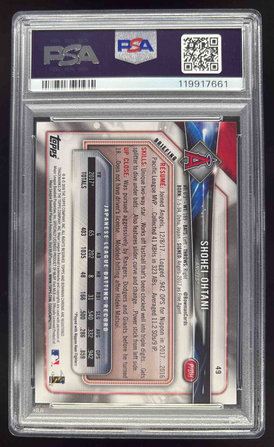 2018 Bowman #49 Shohei Ohtani RC PSA 10