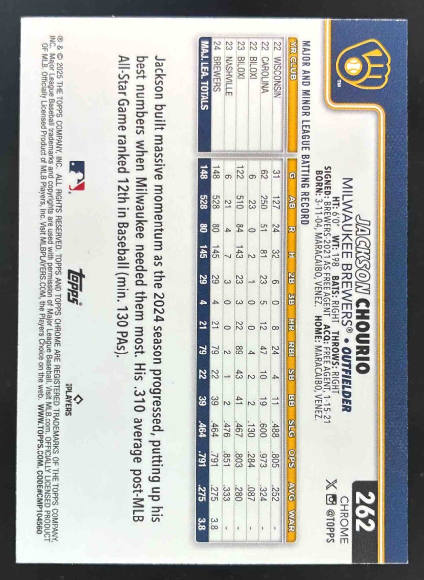 2025 Topps Chrome LogoFractor Image Variation #262 Jackson Chourio