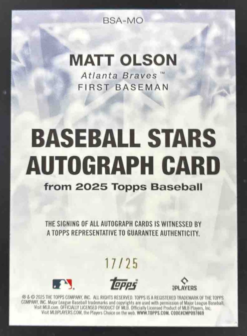 2025 Topps Baseball Stars Autographs Orange #BSA-MO Matt Olson Auto /25