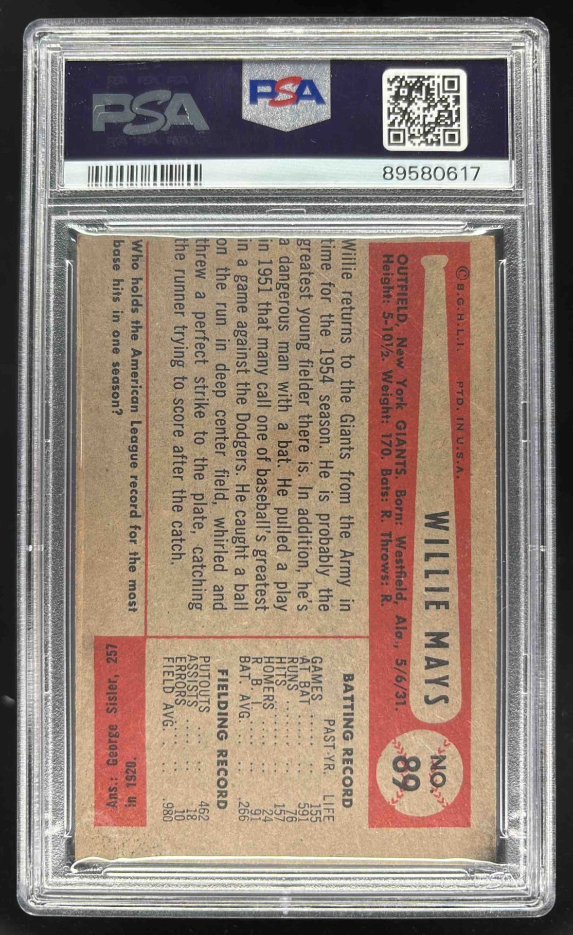 1954 Bowman #89 Willie Mays PSA 3