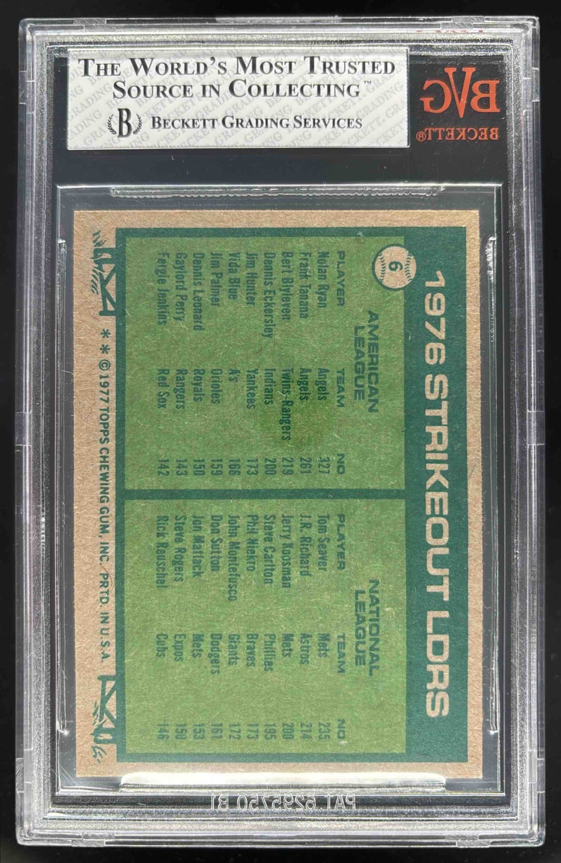 1977 Topps #6 1976 Strikeout Leaders Nolan Ryan Tom Seaver League Leaders BGS 6