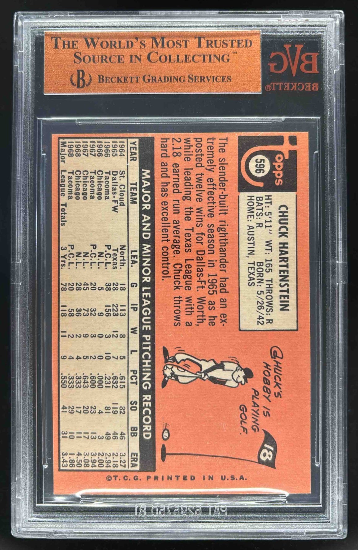 1969 Topps #596 Chuck Hartenstein BGS 8