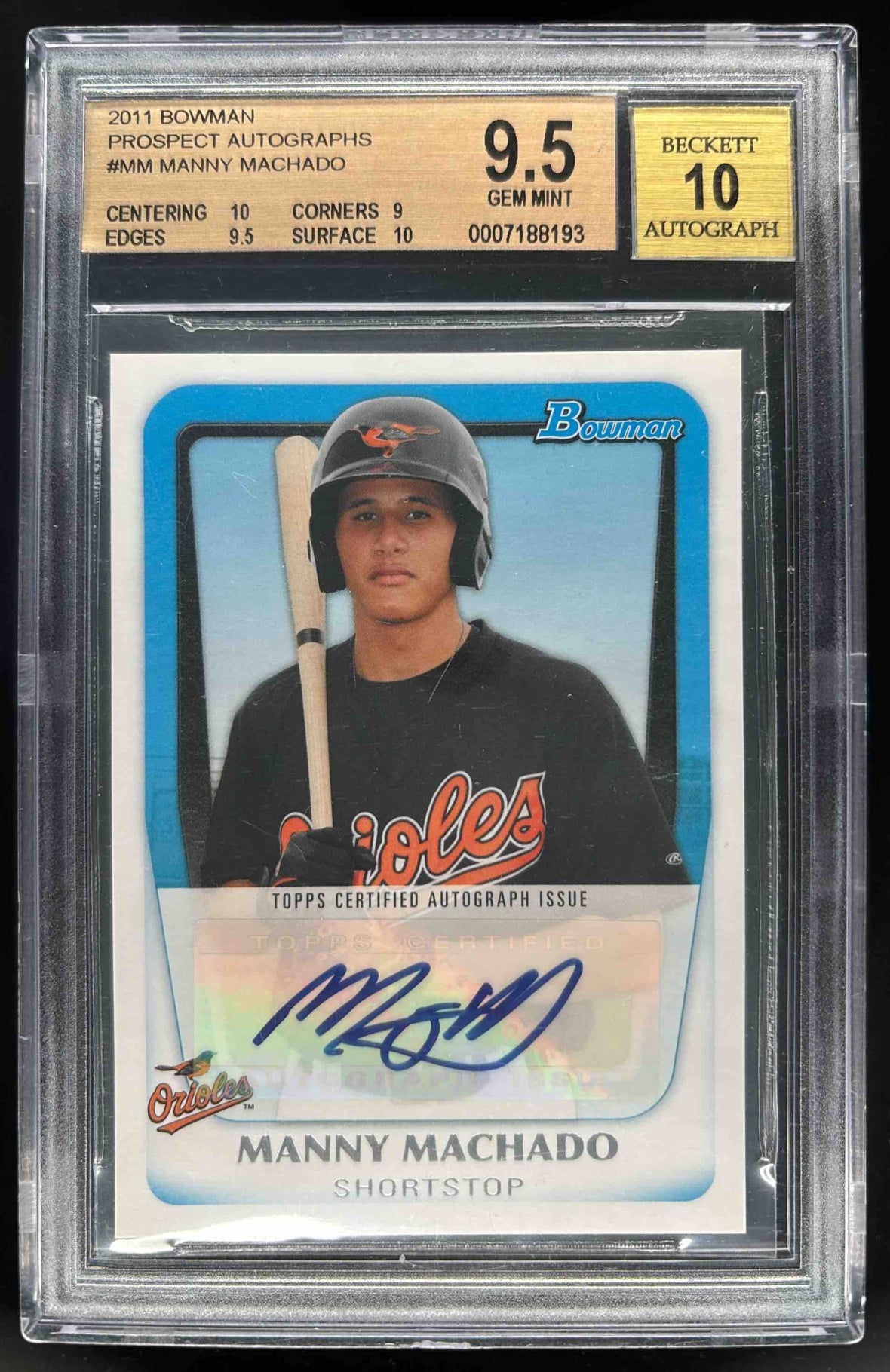 2011 Bowman Prospect Autographs #BPA-MM Manny Machado Auto BGS 9.5