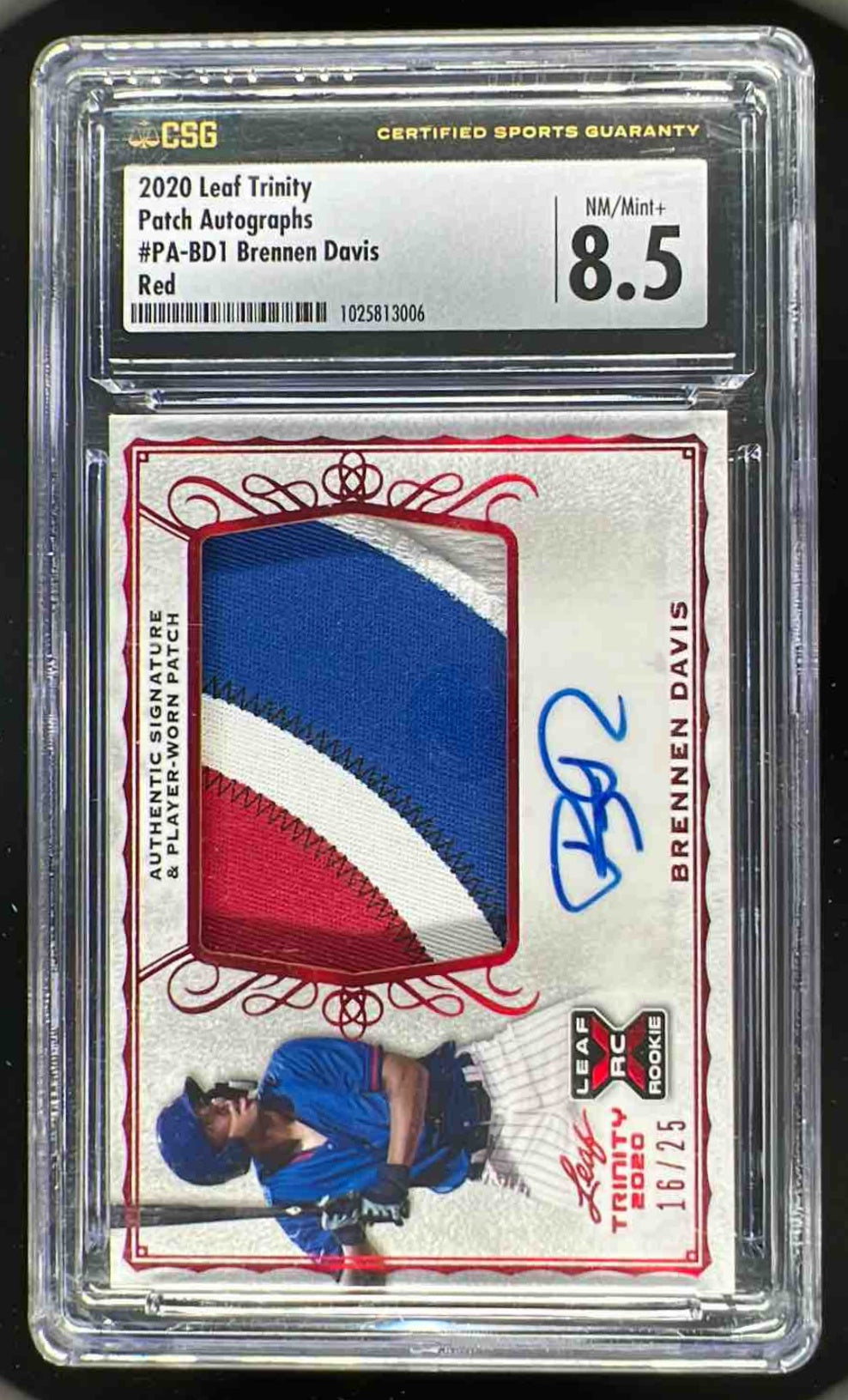 2020 Leaf Trinity Patch Spectrum Red HoloFoil Brennen Davis Auto /25 CSG 8.5