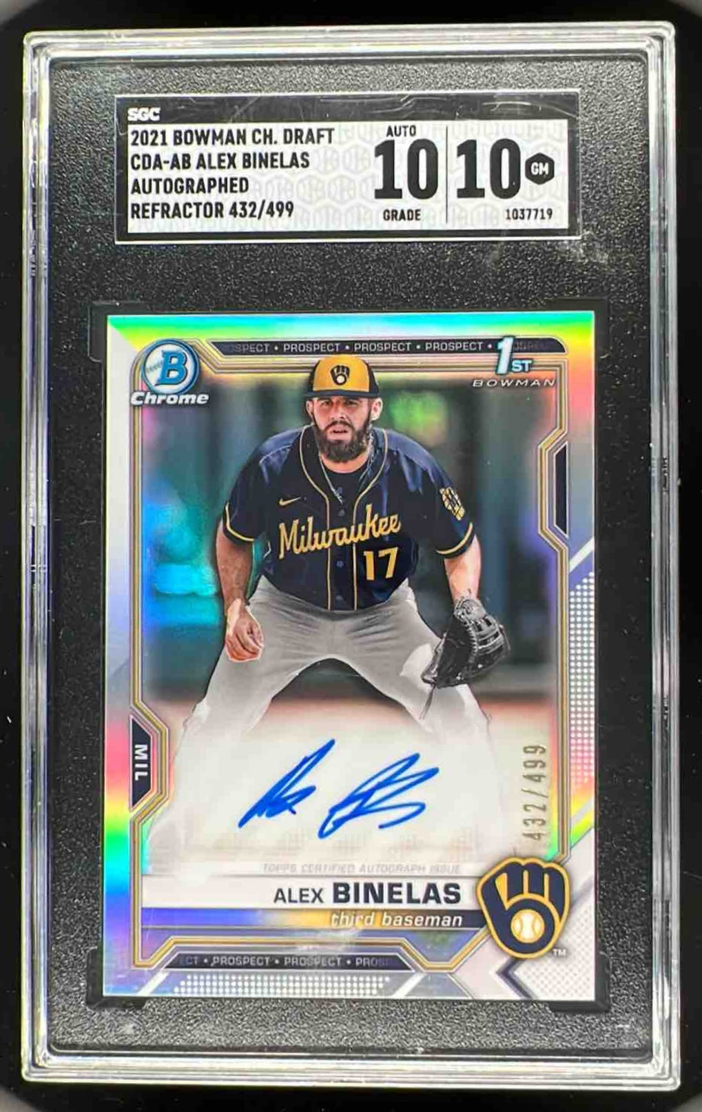 2021 Bowman Draft Chrome Pick Refractor #CDA-AB Alex Binelas Auto /499 SGC 10