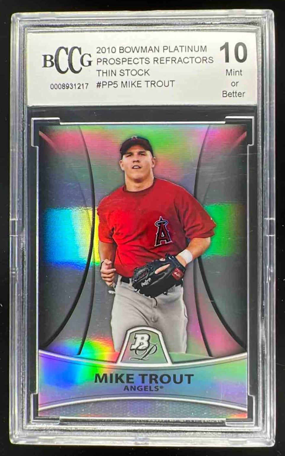 2010 Bowman Platinum Prospects Thin Stock Refractor #PP5 Mike Trout /999 BCCG 10