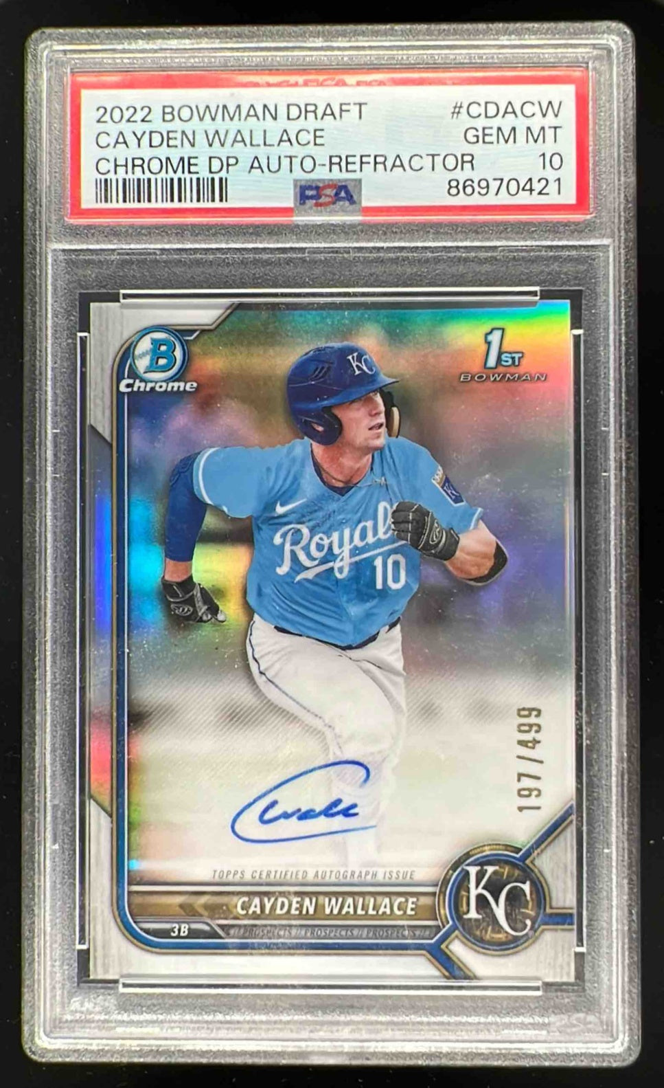 2022 Bowman Chrome Pick Refractor #CDA-CW Cayden Wallace RC Auto /499 PSA 10