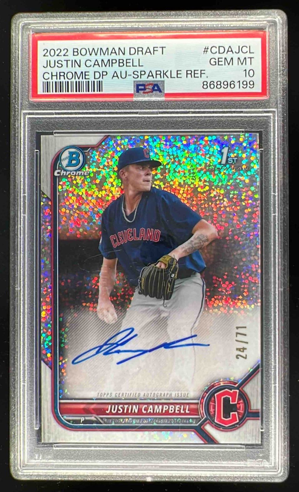 2022 Bowman Draft Chrome Pick Sparkle #CDAJCL Justin Campbell RC Auto /71 PSA 10