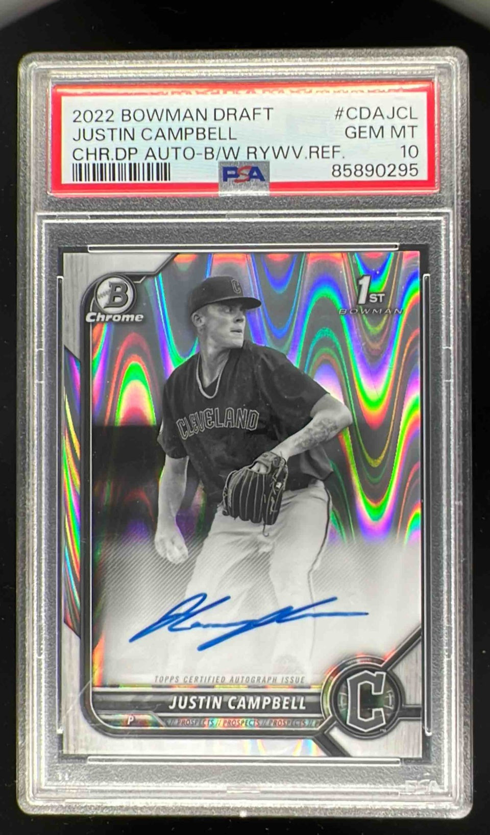 2022 Bowman Chrome Black & White RayWave Justin Campbell RC Auto PSA 10
