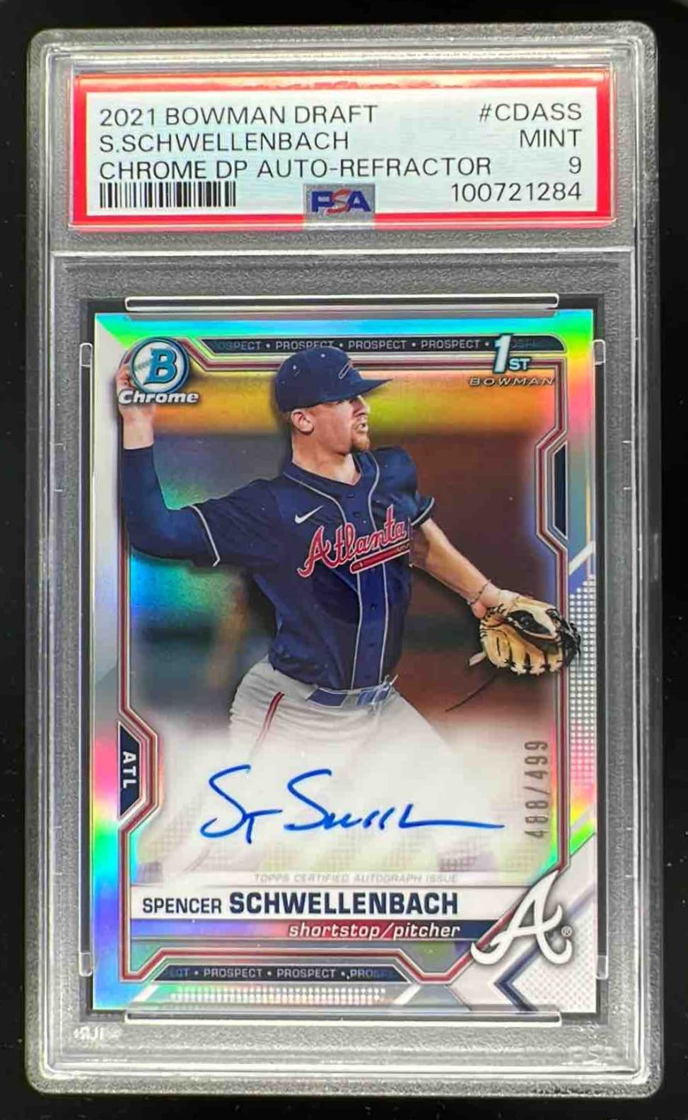 2021 Bowman Draft Chrome Pick Refractor Spencer Schwellenbach Auto /499 PSA 9