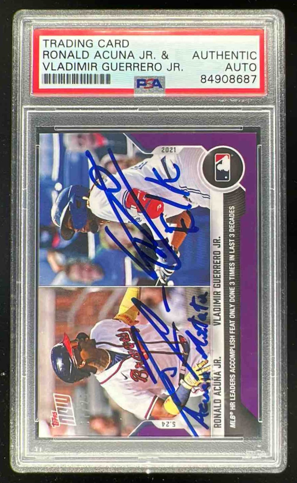 2021 Topps Now Purple Dual Auto Ronald Acuna Vladimir Guerrero /25 PSA Authentic