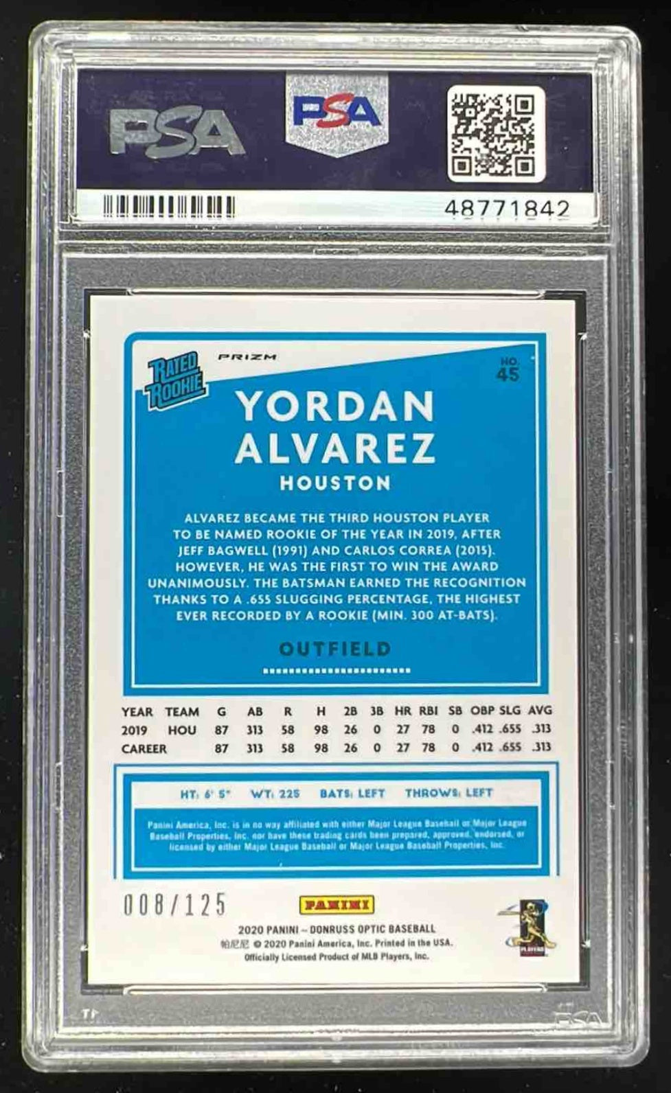 2020 Donruss Optic Black Stars #45 Yordan Alvarez RC Rated Rookie /125 PSA 10