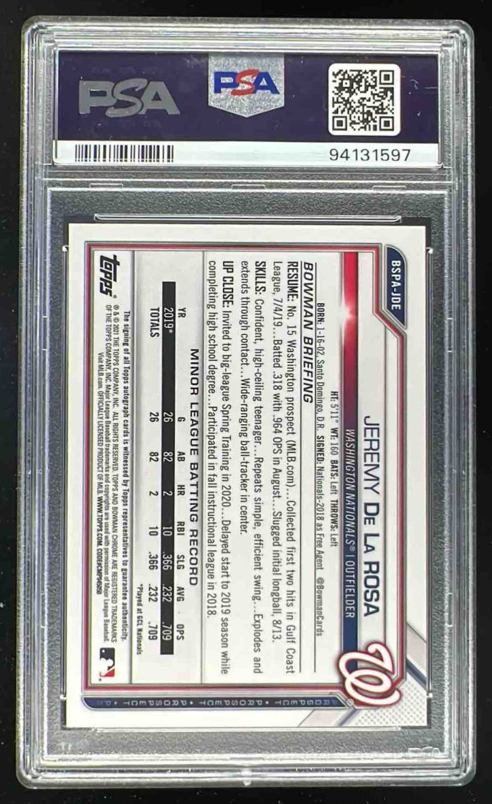 2021 Bowman Sapphire Chrome Orange #BSPA-JDE Jeremy De La Rosa Auto /25 PSA 10