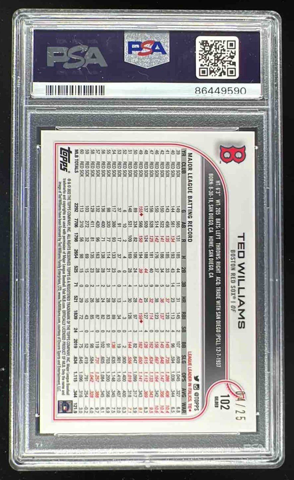 2022 Topps Gilded Collection RayWave Gold Etch #102 Ted Williams /25 PSA 10