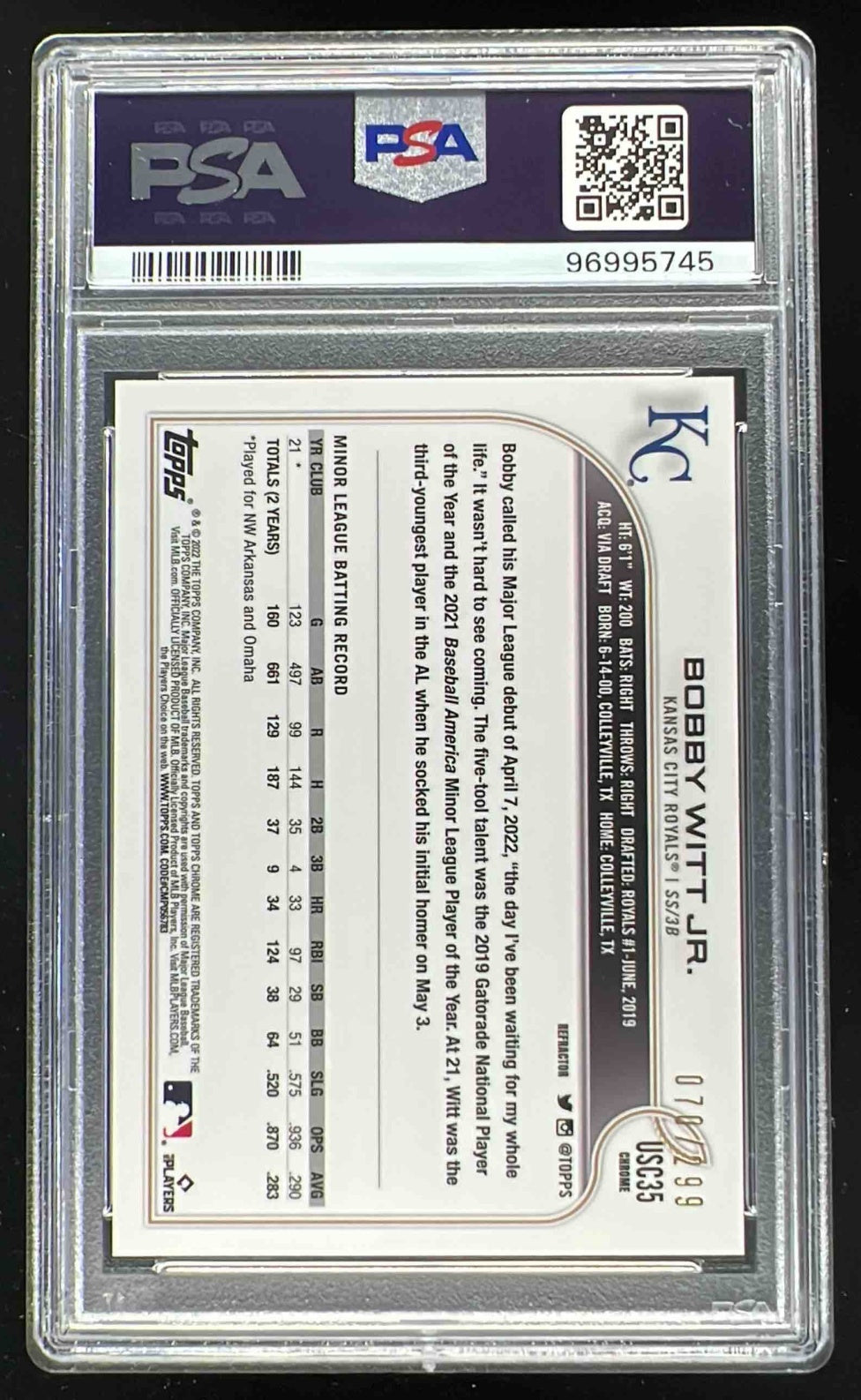 2022 Topps Chrome Update Refractor #USC35 Bobby Witt Jr. RC /299 PSA 9