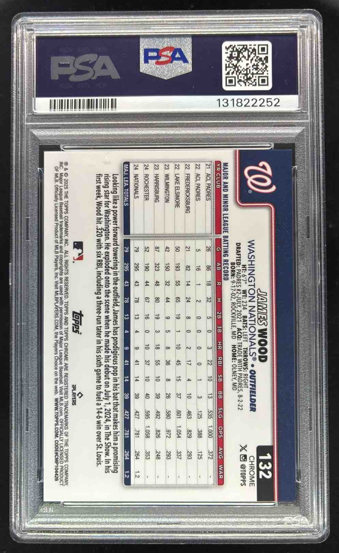 2025 Topps Chrome LogoFractor Orange Refractor #132 James Wood RC /25 PSA 10