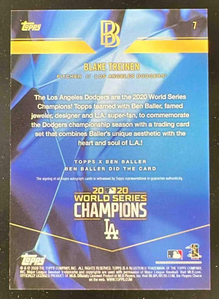 2020 Topps x Ben Baller Los Angeles Dodgers World Series #7 Blake Treinen Auto
