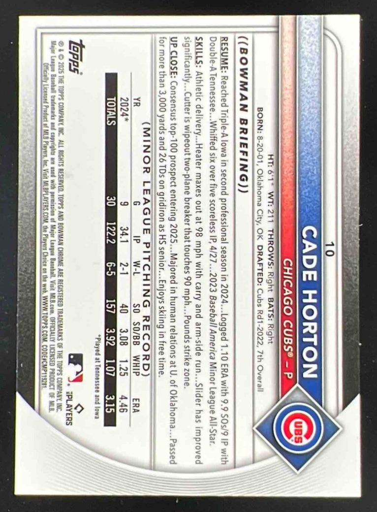 2025 Bowman Chrome Red RC Variation #10 Cade Horton RC