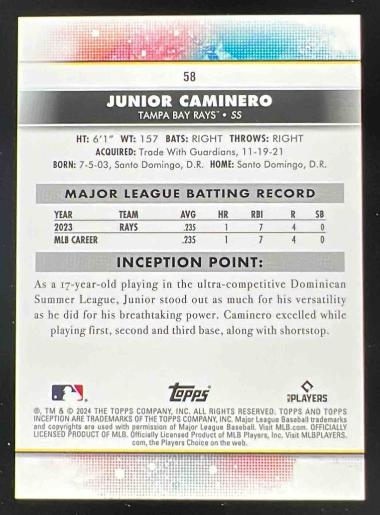 2024 Topps Inception Yellow #58 Junior Caminero RC /199