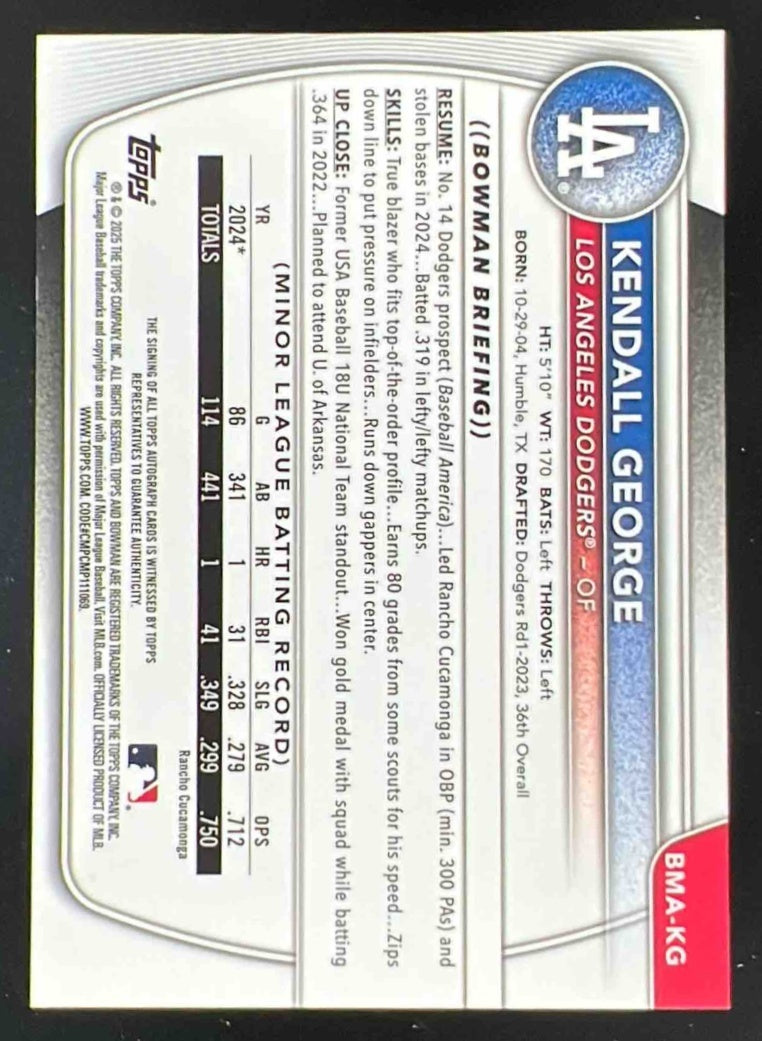 2025 Bowman Chrome Mega Box Refractor #BMA-KG Kendall George Auto