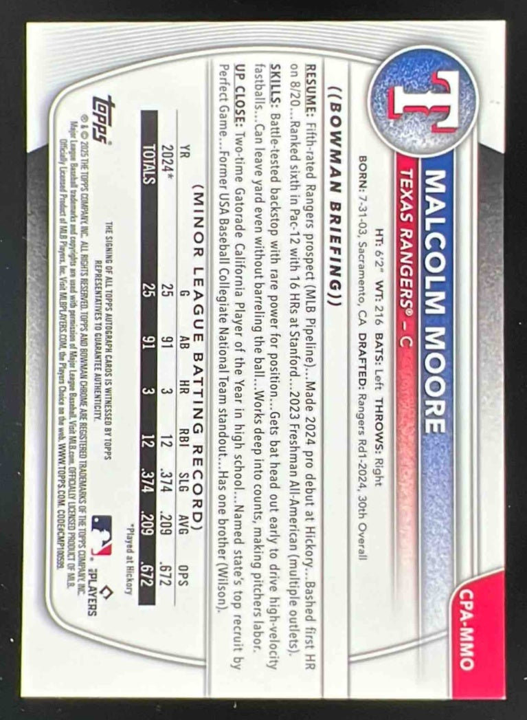 2025 Bowman Chrome Green Grass Refractor #CPA-MMO Malcolm Moore RC Auto /99