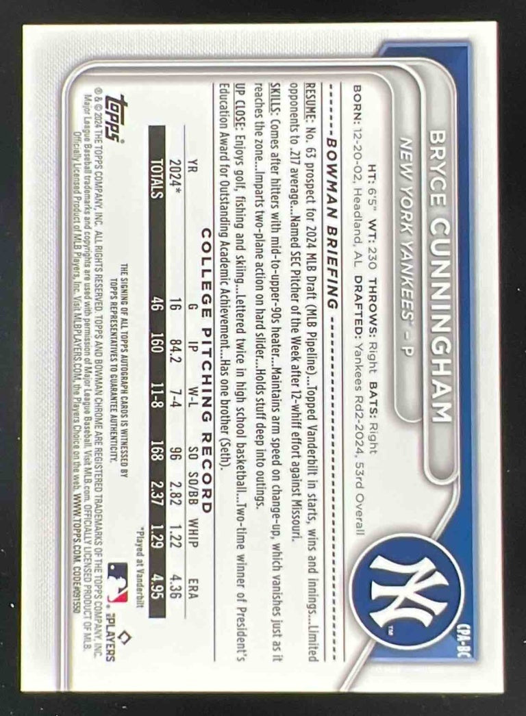 2024 Bowman Draft Chrome HTA Choice Refractor Bryce Cunningham RC Auto /150