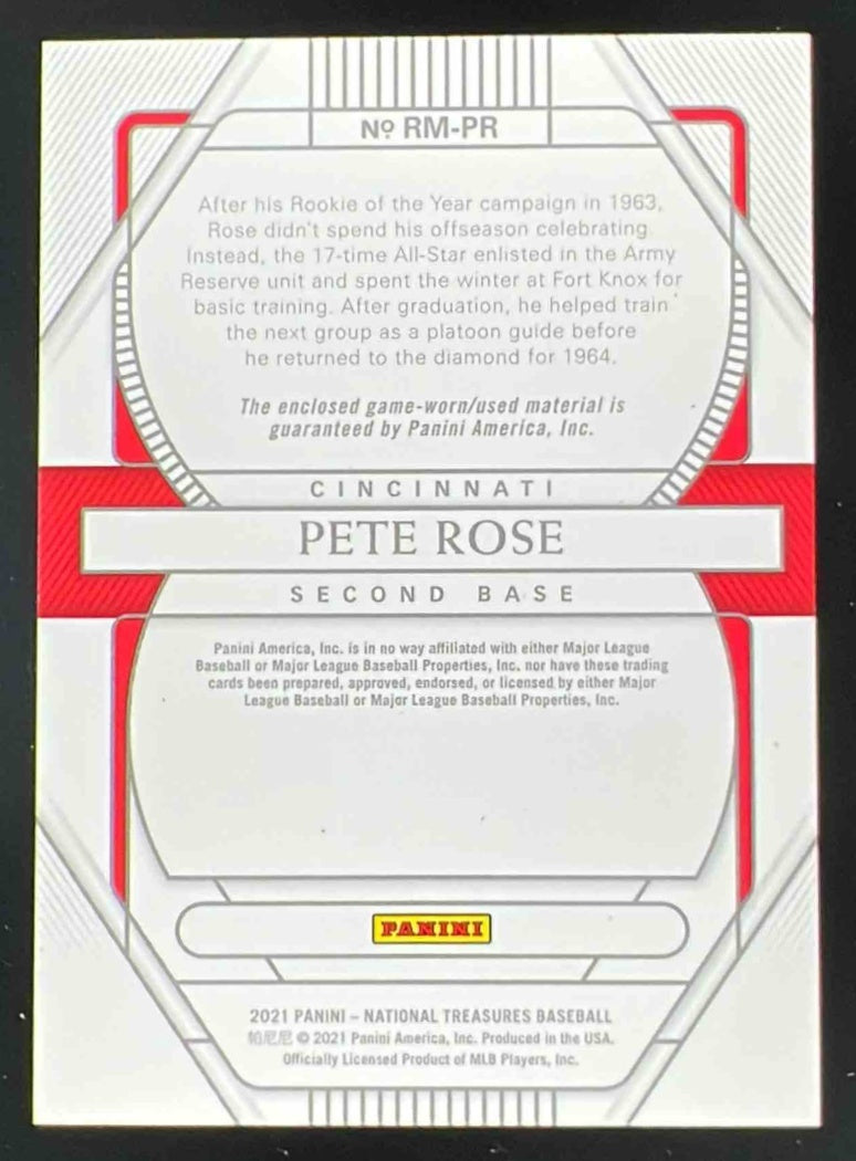 2021 National Treasures Retro Materials Holo Gold #RM-PR Pete Rose /25