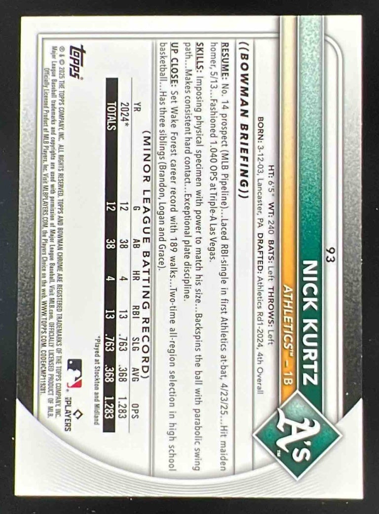 2025 Bowman Chrome Red RC Variation #93 Nick Kurtz RC