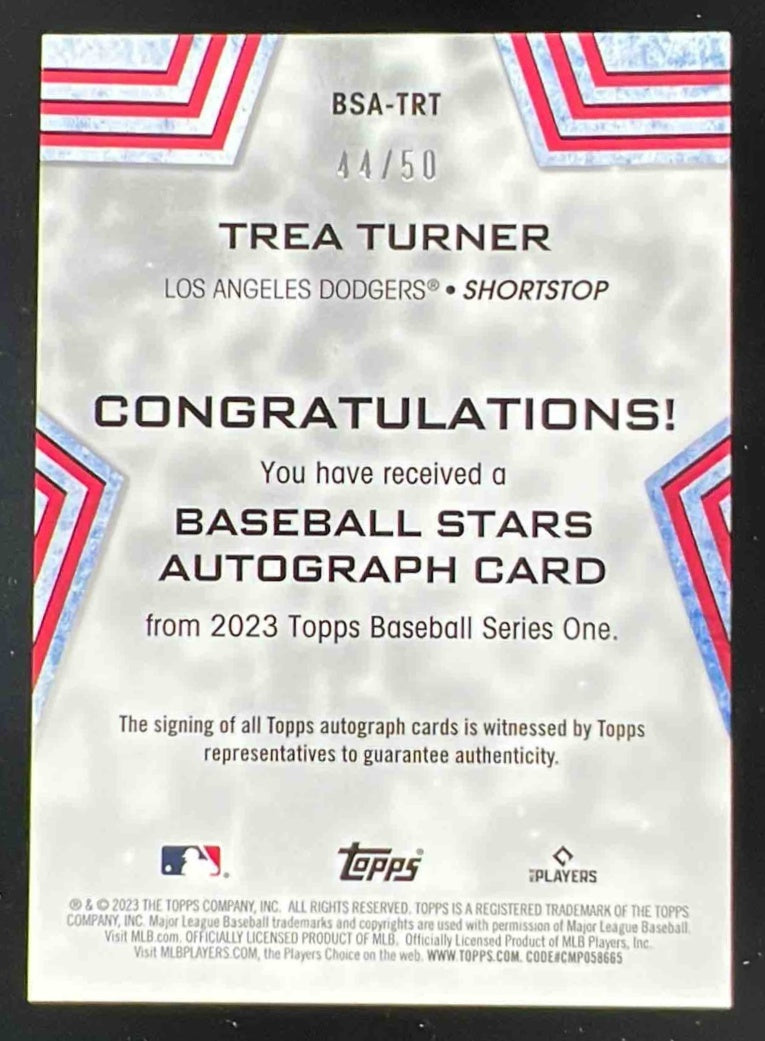 2023 Topps Baseball Stars Series One Gold #BSA-TRT Trea Turner Auto /50