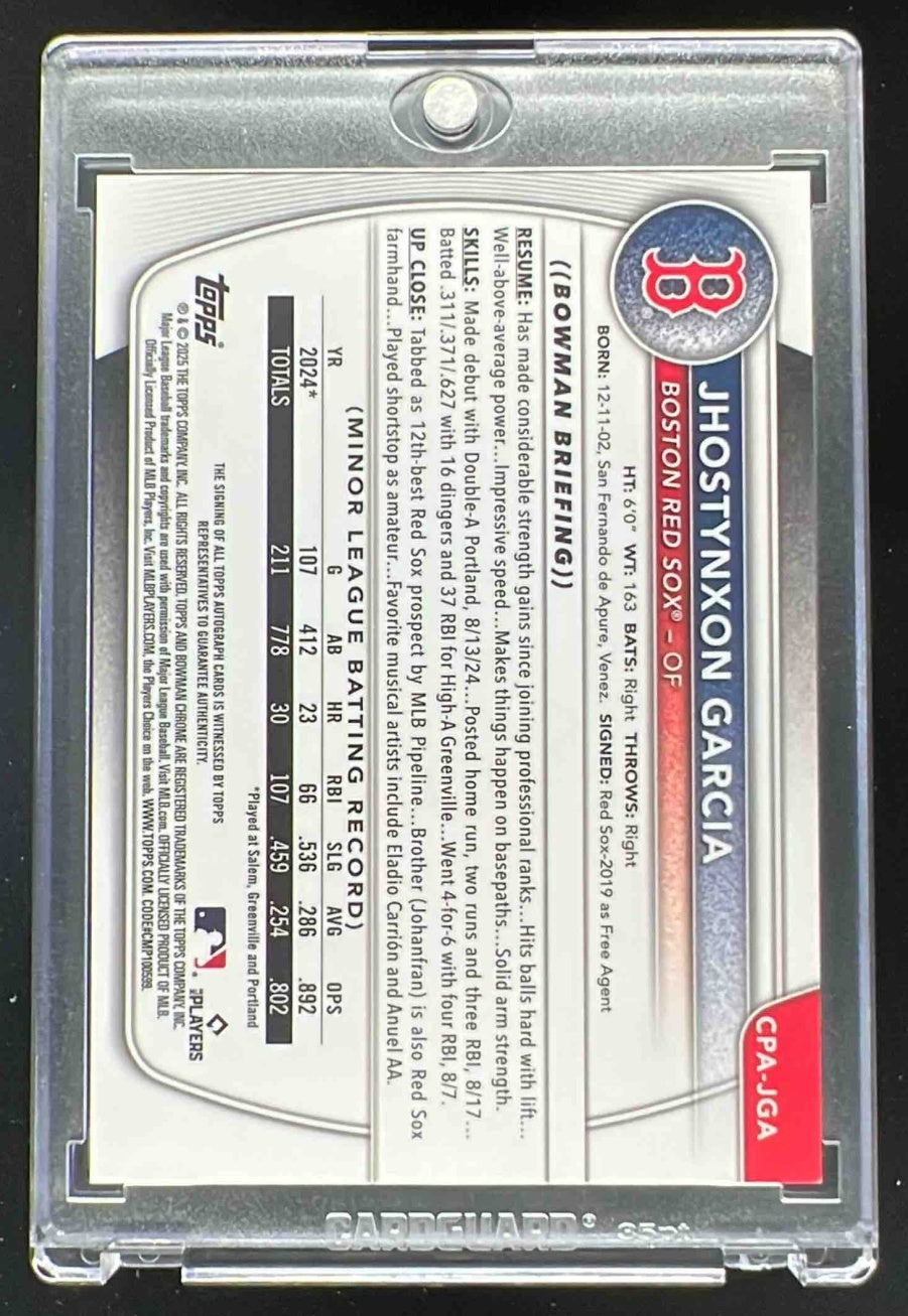 2025 Bowman Chrome Autographs Blue Refractor #JGA Jhostynxon Garcia RC Auto /150